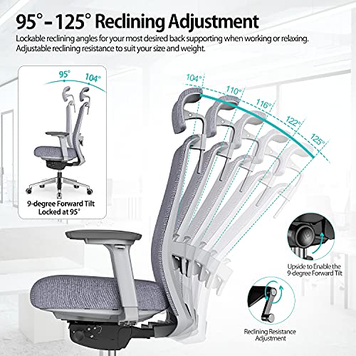 ★ 95°-125° Reclining Adjustment: 5 lockable back supporting angles at 104, 110, 116, 122 and 125 degrees, 9-degree forward tilt locked at 95 degree; with the adjustable reclining resistance, easily get the desired support angle and flexibility to suit your size and weight when working or relaxing.