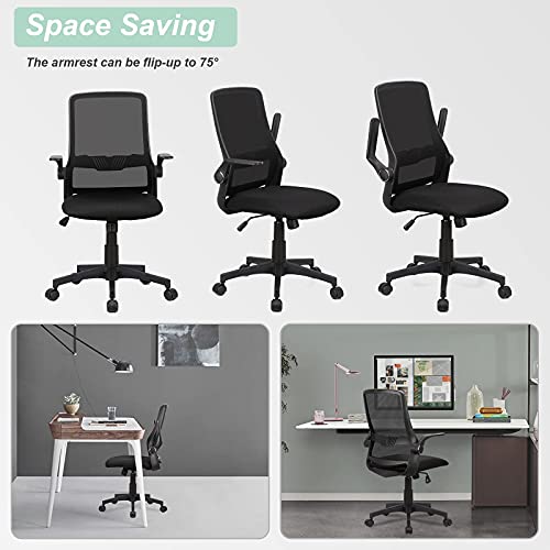 【Flip-up armrests】75°flip-up armrests,curved design,giving your arms a comfortable support and put the chair under the desk for save space. Suitable for living room, study room, conference room and office.
